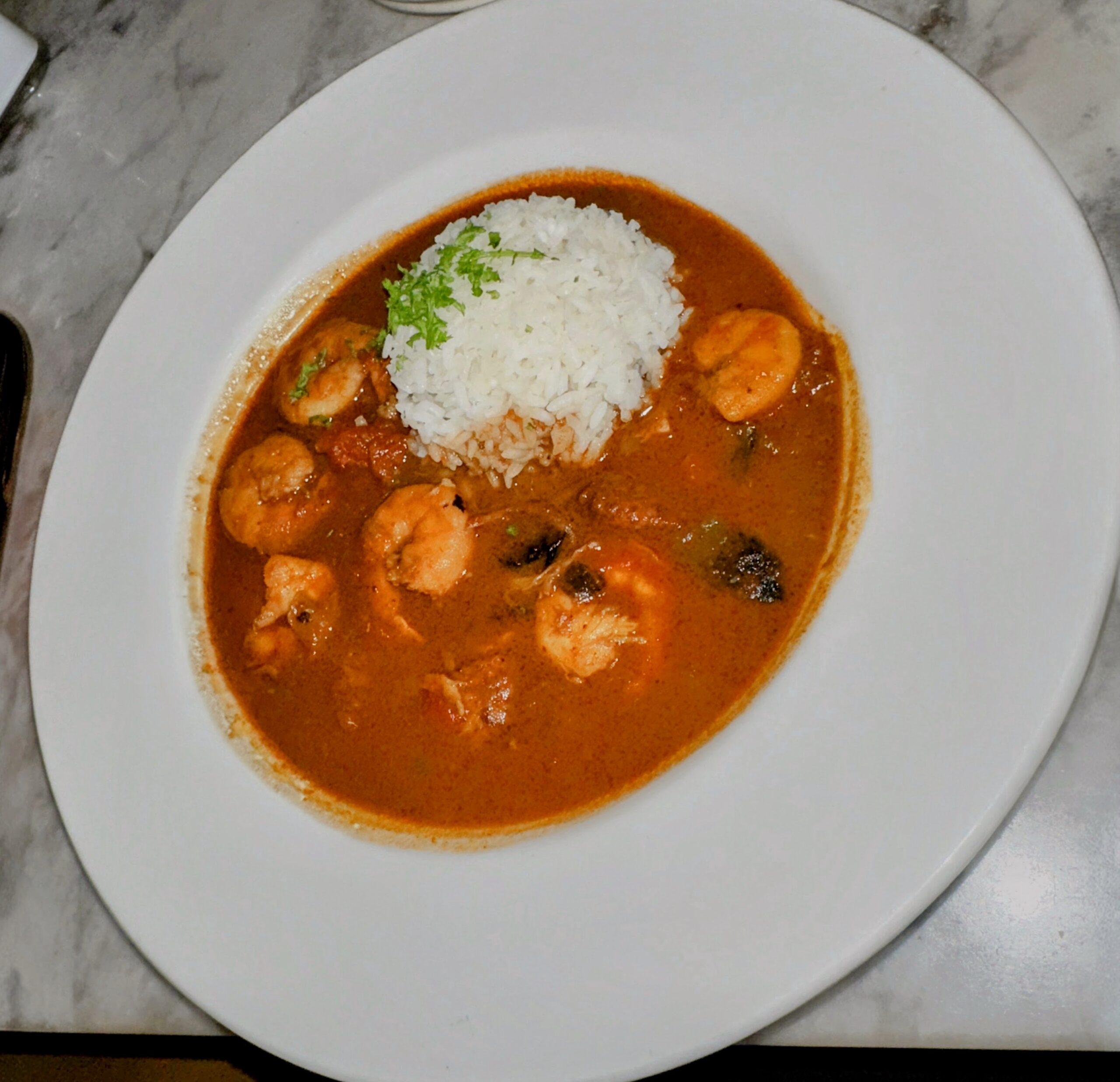 Onto the food: their menu covers a wide range of cuisine. They have everything from vegetable curry to crab pasta to flatbreads. That was part of the reason we chose it; we didn’t have to pick one style of food for the evening. I ended up ordering the seafood gumbo. I was looking for something hearty and warm but also wanted seafood. The dark roux was delicious and well-seasoned, and the shrimp were cooked perfectly. I did wish that there were more chunks of sausage and that it was a tad bit hotter, as I was cold and craving that warm heartiness, but overall the flavor was impeccable.